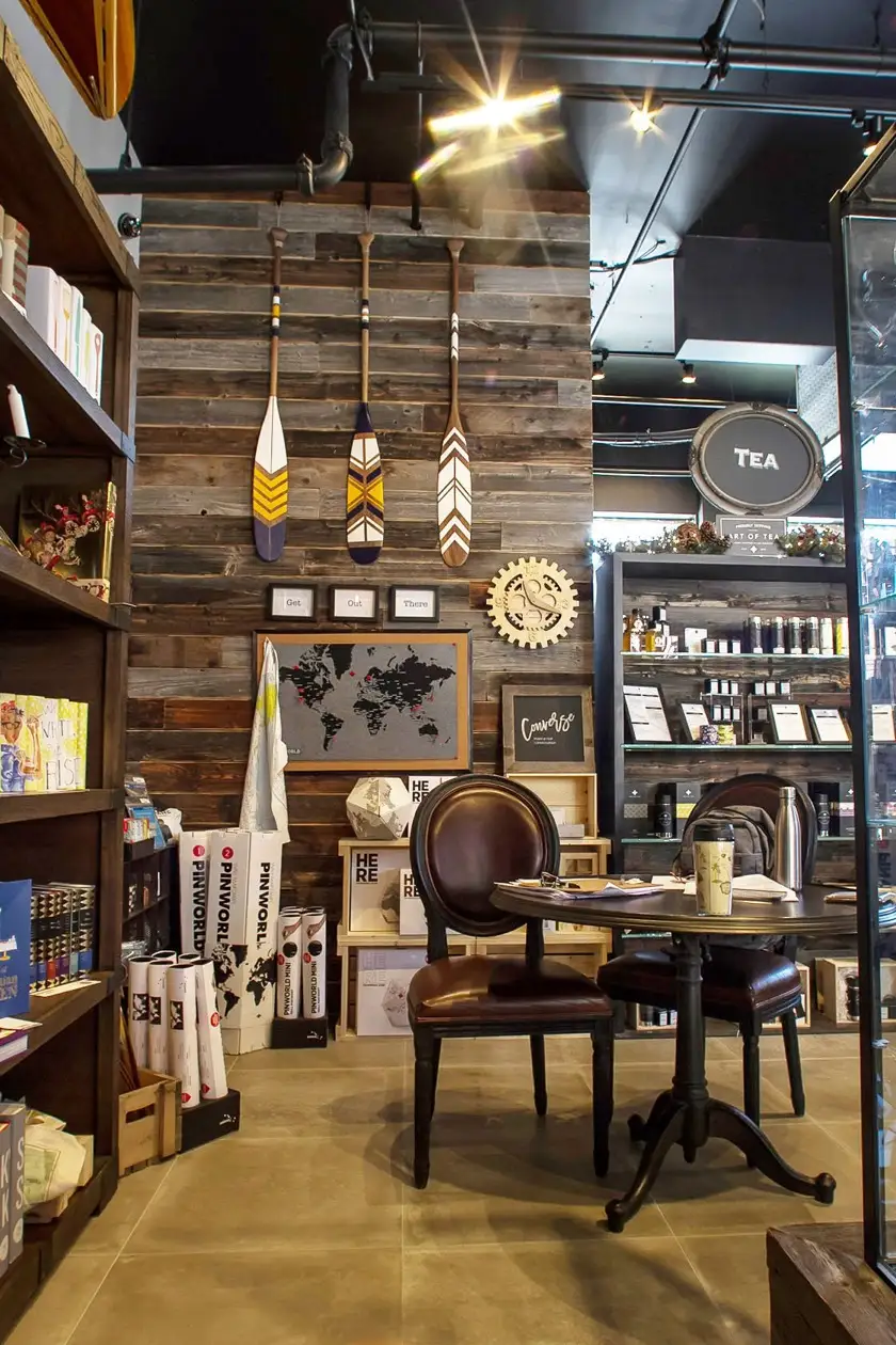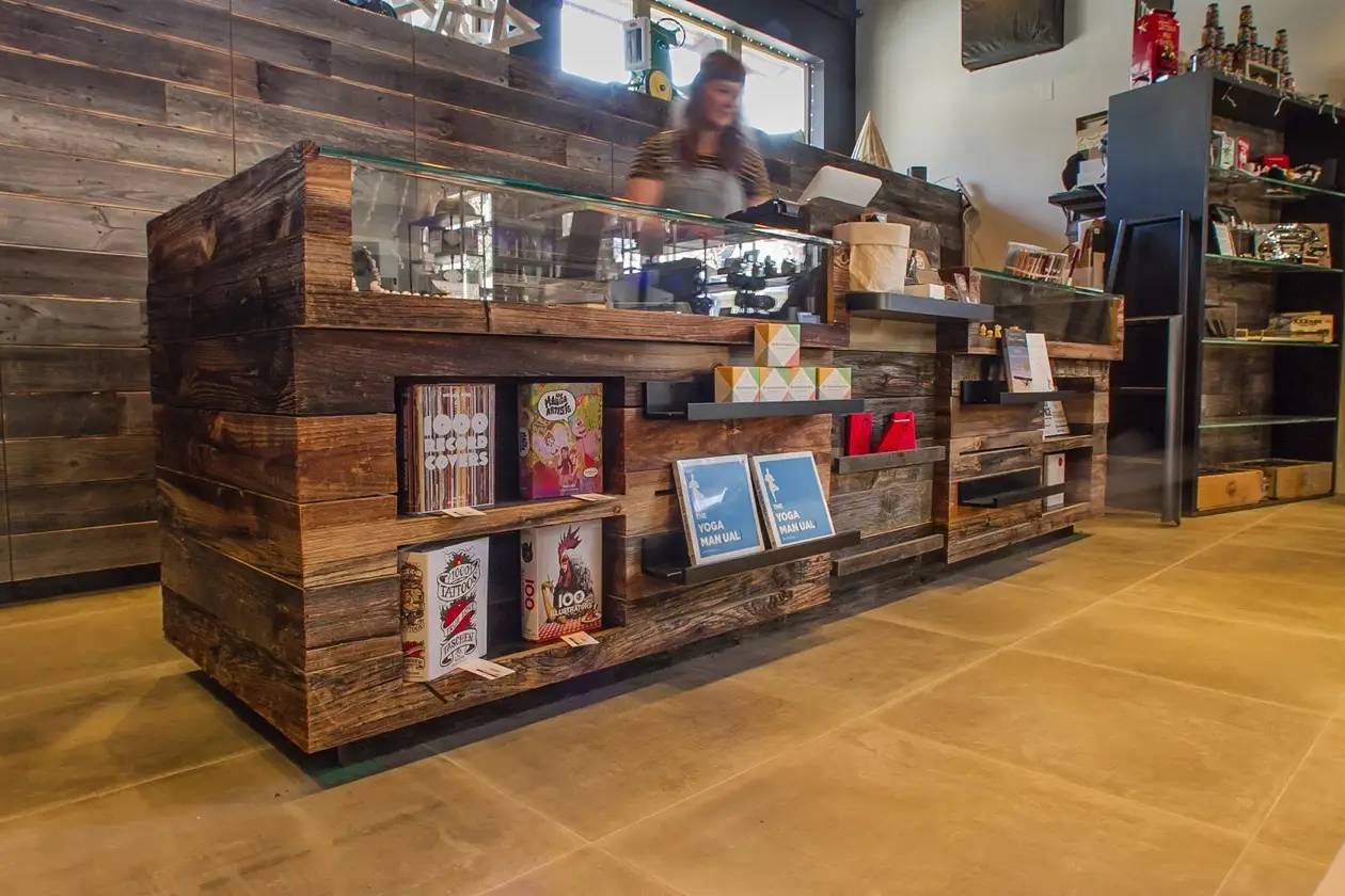 New high-end gift shop in Creekside commercial park. Start to retail fit-out. Sustainable, reclaimed lumber millwork.
