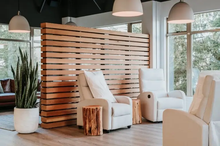 A modern mountain inspired medical office located in Whistler, BC. Construction focused on a creating a classic but contemporary look while focusing on sustainable building materials. All Mountain worked with the owner and designer to maximize the impact of the wild spaces surrounding the clinic. This commercial renovation in Whistler maximized the natural light in the reception and waiting area providing a calming atmosphere for incoming patients. The treatment rooms are bright and professional.
